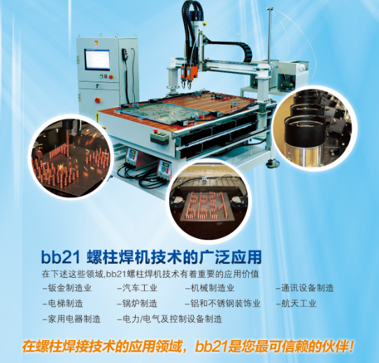 bb21螺柱焊機(jī)代表處,德國(guó)螺柱焊機(jī),bb21螺柱焊機(jī),進(jìn)口螺柱焊機(jī),螺柱焊槍,bb21螺柱焊槍,螺柱焊釘及螺柱焊接配件。德國(guó)bb21授權(quán)代表處-友君歐比歐(廈門)機(jī)械設(shè)備有限公司