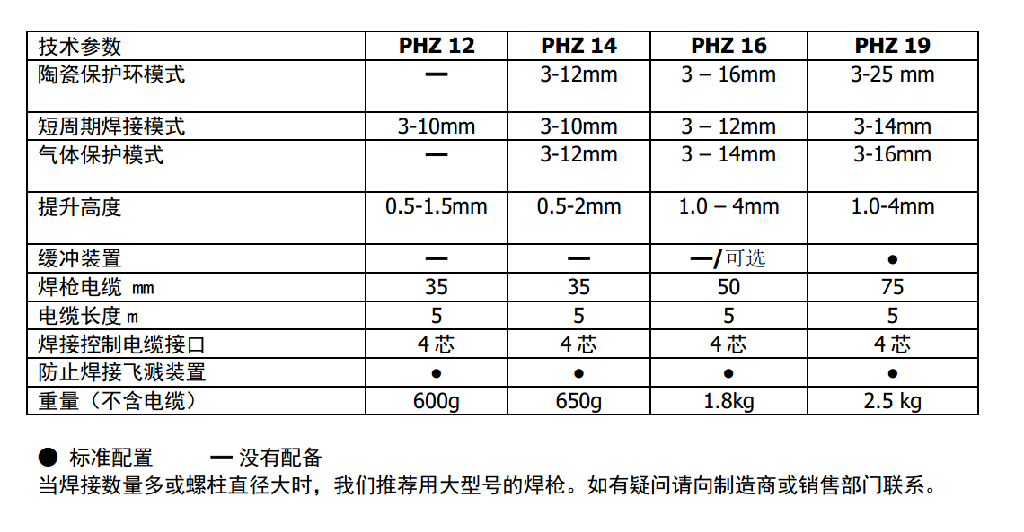 PHZ系列螺柱焊槍技術(shù)參數(shù)